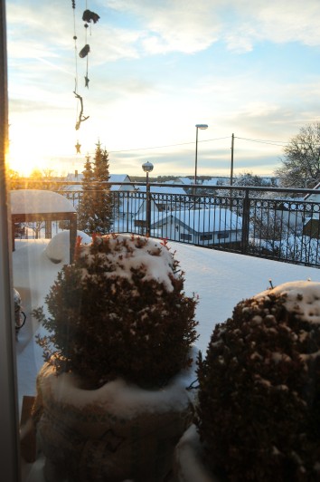 Endlich liegt auf der Alb wieder Schnee. Der Buchsbaum im geschützten Terracotta-Topf ergänzt mit einem Holzstern blickt tapfer der Morgensonne entgegen.