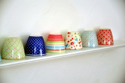Auf dem vom Schreiner nach meinem Wunsch gefertigten Board leuchten die Tassen noch mehr um die Wette.